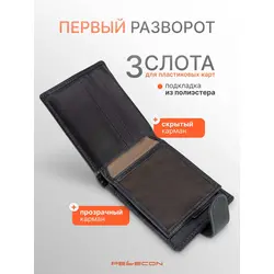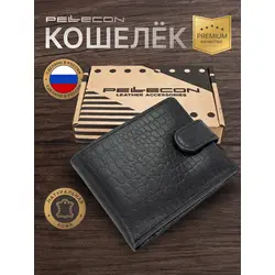 Портмоне мужское из натуральной кожи Pellecon, черный с теснением