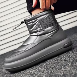 Теплые мужские зимние ботинки, водонепроницаемые уличные зимние сноубутсы с вращающейся кнопкой, мужские высокие плюшевые ботинки из хлопка, Мужская зимняя походная обувь