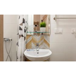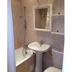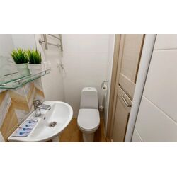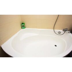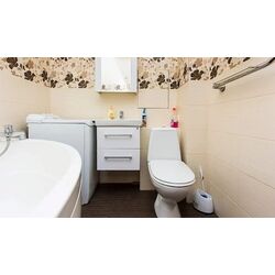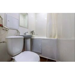 В ванной комнате установлена новая сантехника с полноценной ванной и раковиной.